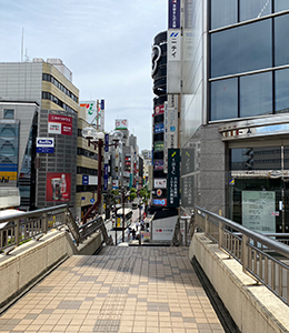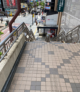 出て右手の三井住友銀行のビルの隣りの階段を降ります。
