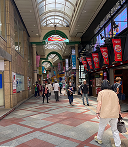 右手にバーガーキング、二番街商店街を見ながらまっすぐ進みます。