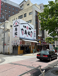 そのまま進むと、右手に吉野家、左手に焼鳥屋さんが見えれば、右手にかいきり本店です。